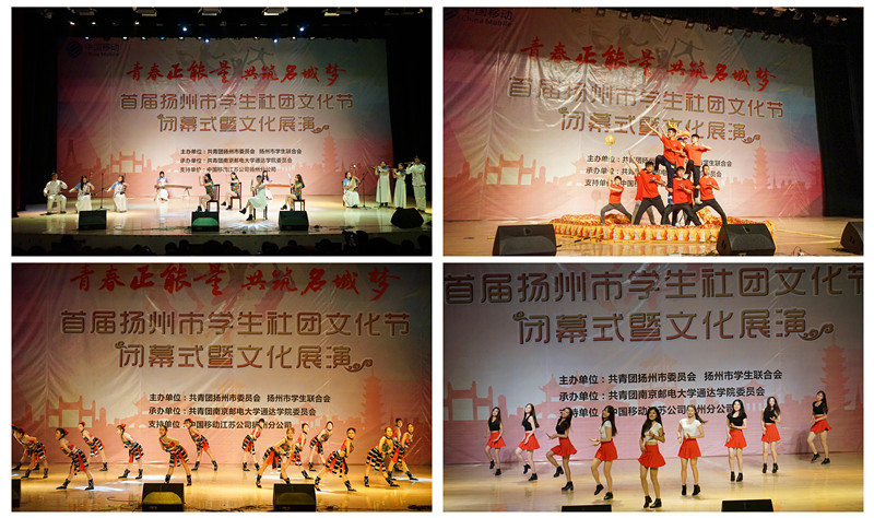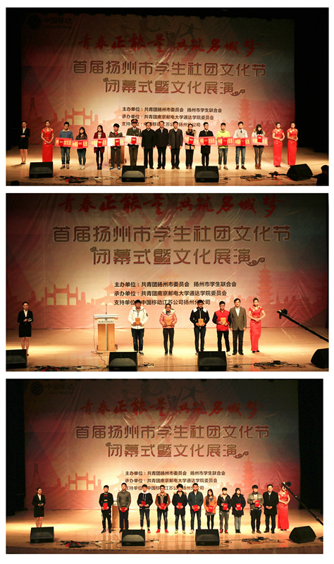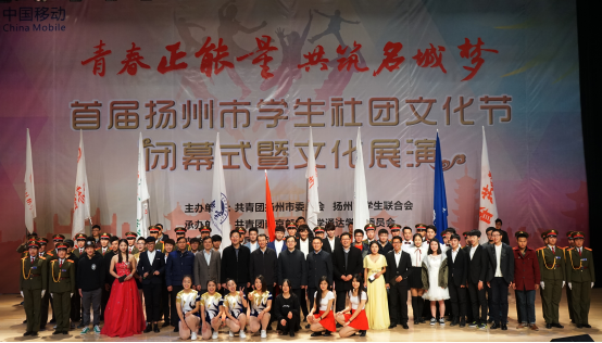 12月6日下午,以“青春正能量,共筑名城梦”为主题的首届扬州市学生社团文化节闭幕式暨文化展演在威尼斯官网大学生活动中心隆重举行。活动由扬州团市委、扬州市学联主办,威尼斯官网团委承办。团省委党组成员、省少先队总辅导员姜东,市政府副秘书长朱勇,团省委学校部副部长薛保刚,扬州团市委书记佘俊臣,副书记张跃春,中国移动扬州分公司副总经理吴鹏,威尼斯官网党委书记戴兆骏,副书记王立辉应邀出席。来自扬州各高校、中学(中职)的团委书记,扬州市学联主席团成员以及各学校的学生代表共约1300人参加了此次活动。