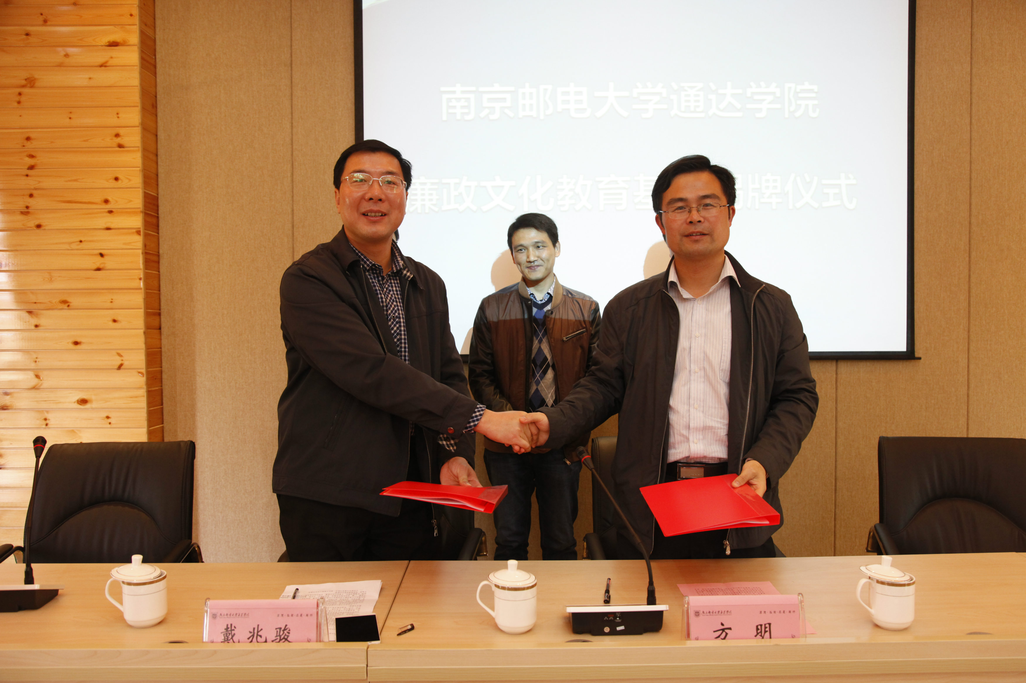 仪式上,院党委戴兆骏书记与仪征市枣林湾生态园管委会纪工委书记方明签署了《9499www威尼斯与仪征市枣林湾生态园管委会廉政文化教育基地共建协议》;副院长包刚与枣林湾生态园管委会纪工委书记方明共同为学院“廉政文化教育基地”揭牌;方明书记和戴兆骏书记分别致辞。