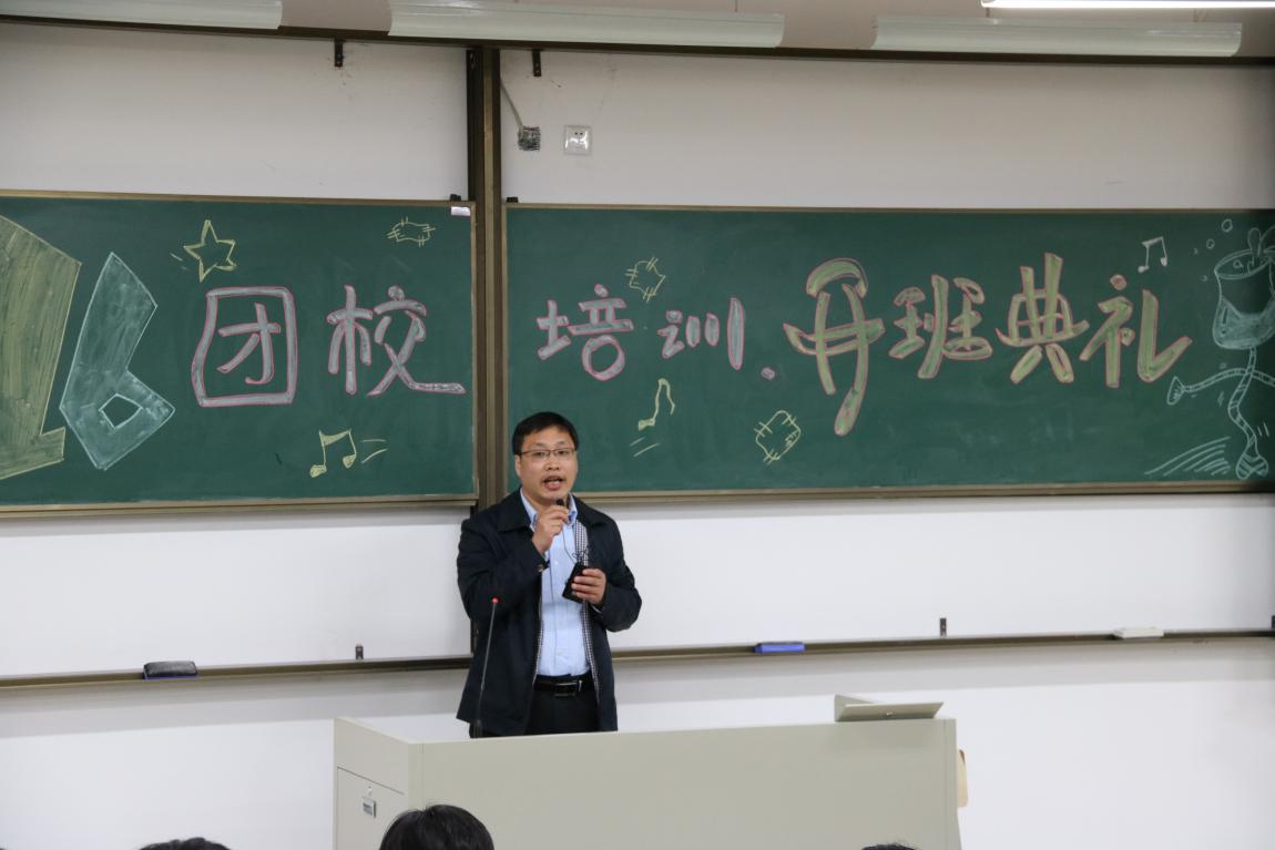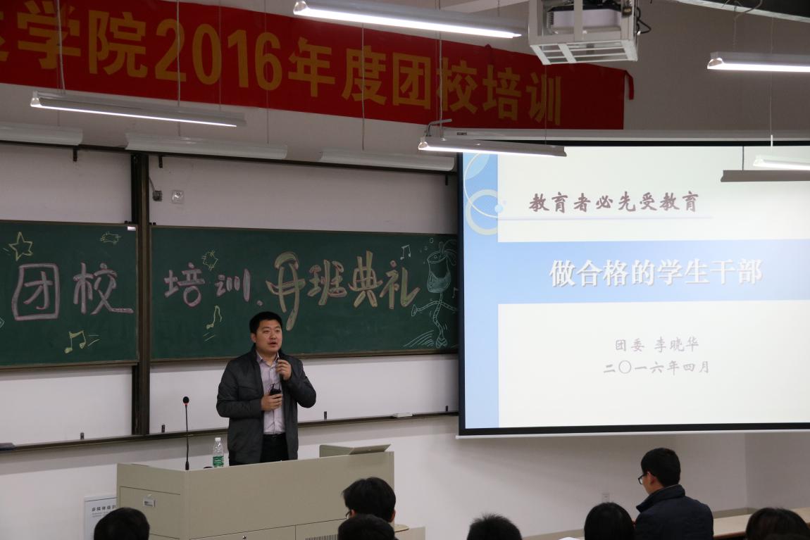 4月7日晚,威尼斯官网团委在扬实1314教室举行了2016年度团校培训开班典礼。9499www威尼斯团委副书记李晓华、威尼斯官网党委副书记王立辉、团委书记解厚荣、各二级学院分团委书记以及参培学员150多人参加了本次开班典礼。开班典礼由团委书记解厚荣主持。