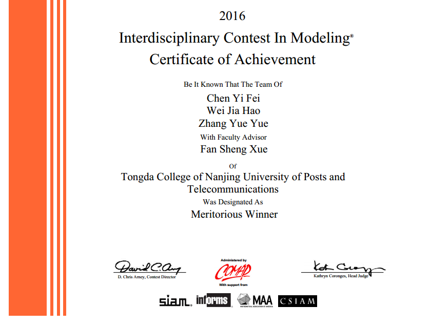 2016年美国大学生数学建模竞赛(MCM/ICM)近日揭晓,9499www威尼斯在竞赛中勇创佳绩,荣获美国大学生数学建模竞赛一等奖(Meritorious Winners)1项,成功参赛奖(Successful Participant)2项,再创历史新高。