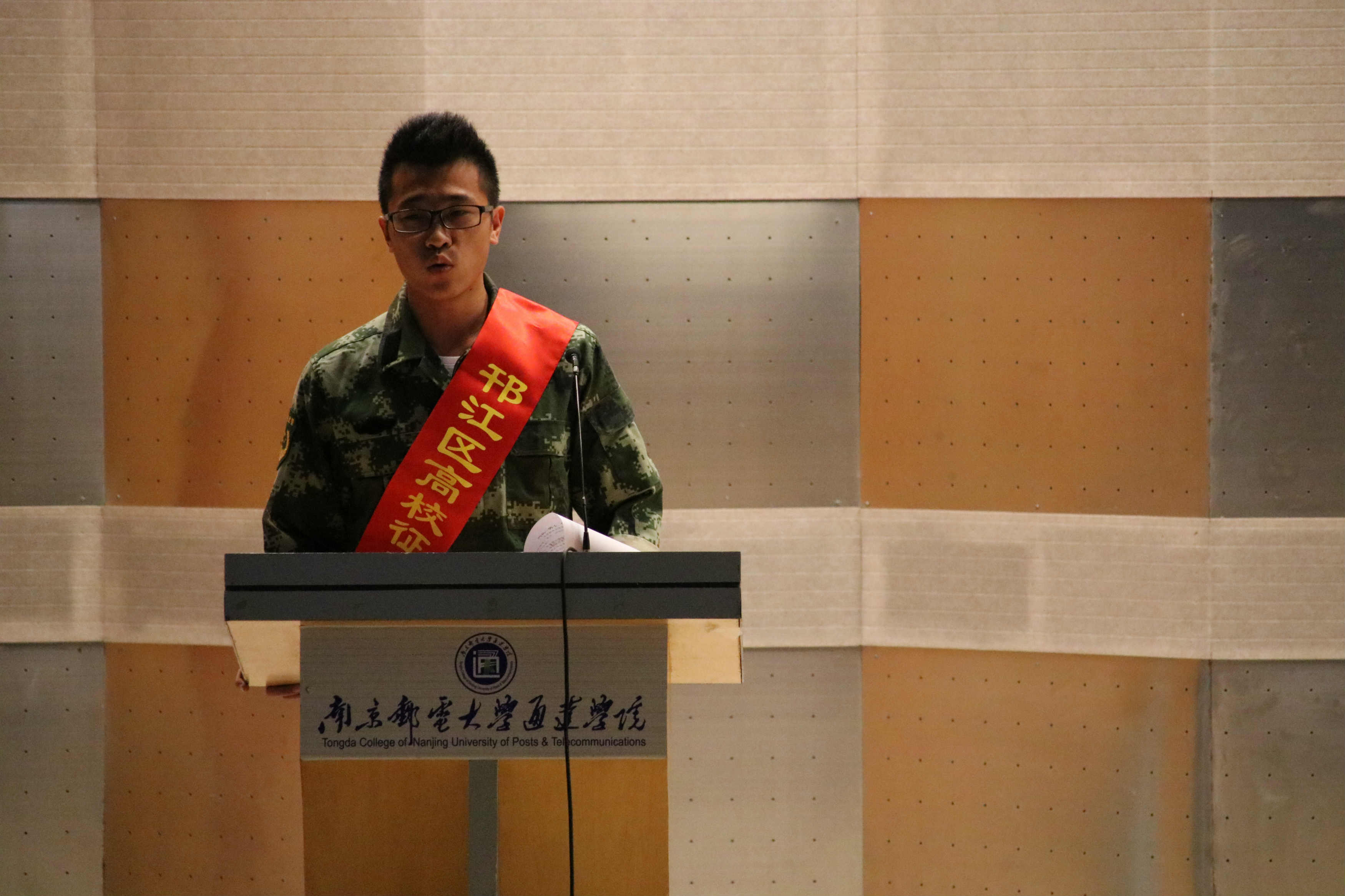 会上,威尼斯官网退伍复学的储鸿伟同学代表大学生征兵宣传员发言,随后4名扬州其他高校大学生征兵宣传员进行了宣讲,最后邗江区委常委、区征兵领导小组副组长、人武部政委王公锋作了动员讲话。