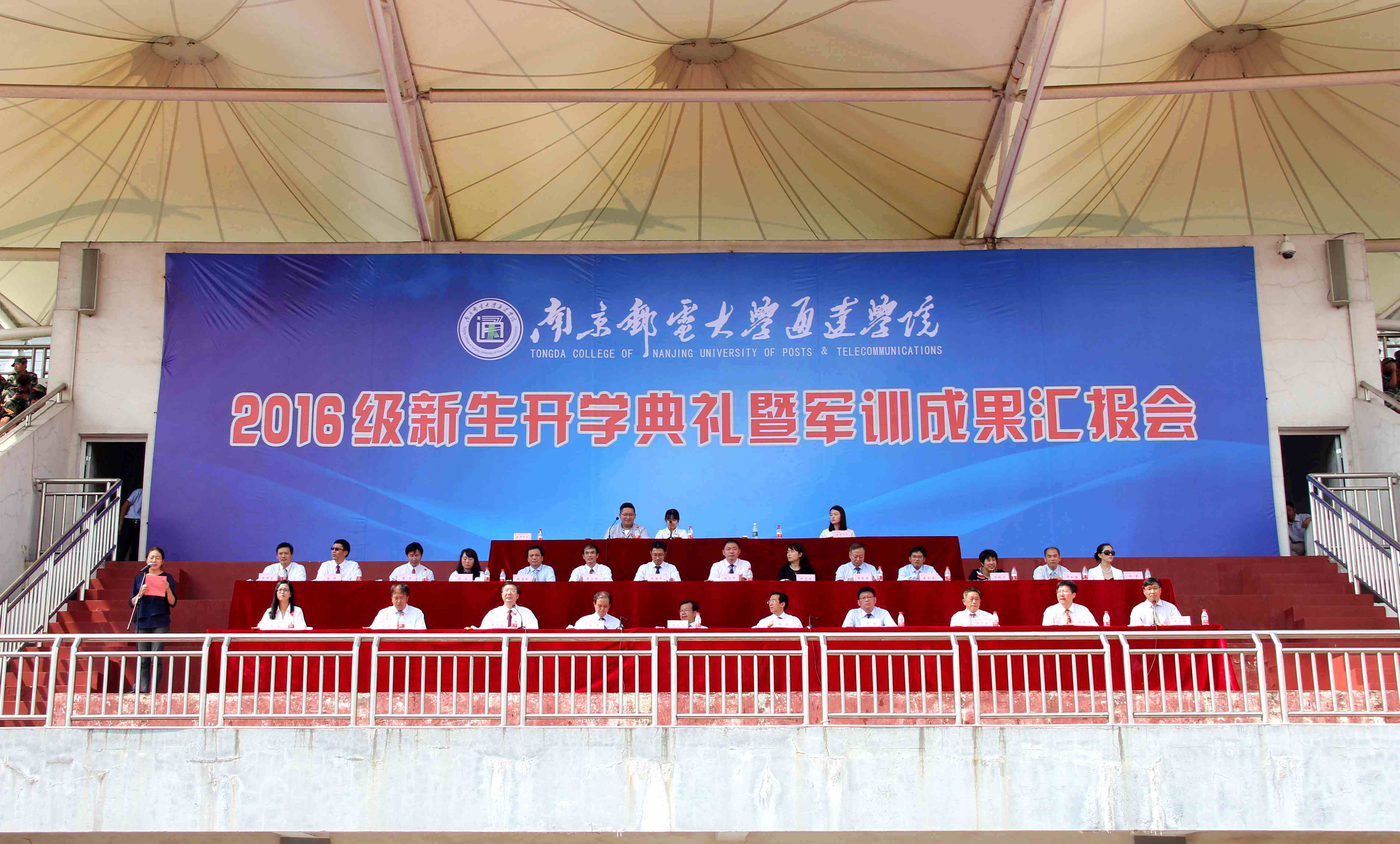9月23日上午,威尼斯官网隆重举行2016级新生开学典礼暨军训成果汇报会。9499www威尼斯校长、南邮通达学院理事会理事长杨震教授,9499www威尼斯副校长、南邮通达学院理事会理事周南平教授,扬州教育投资集团有限公司董事长、南邮通达学院理事会副理事长周翔先生,南邮通达学院理事会全体成员,9499www威尼斯党委办公室、校长办公室许公全主任,9499www威尼斯与南邮通达学院专业共建的学院(部)领导,威尼斯官网全体院领导,全体新生共同出席本次大会。大会由院党委书记戴兆骏主持。