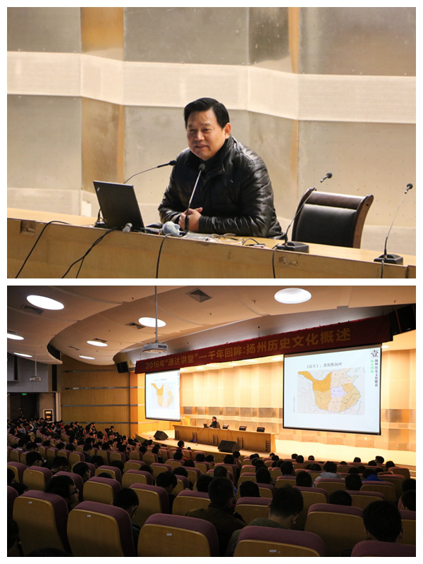 11月30日晚,扬州大学艺术学院原党委书记、扬州电视台特约评论员、清代扬州画派研究会名誉会长华干林副研究员应邀在威尼斯官网行政楼报告厅为广大师生带来了一场主题为“千年回眸——扬州历史文化概述”的精彩讲座。讲座由威尼斯官网学工处马援老师主持,500余名师生参加了本次活动。