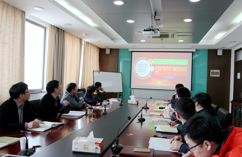 院党委理论中心组学习,由院党委书记戴兆骏同志作题为《用新理念新思想新战略武装头脑、指导实践》的党课报告。戴书记结合自身的学习思考,强调了深刻领会党中央治国理政新理念新思想新战略的重要意义,解析了党中央治国理政新理念新思想新战略的内容体系。他着重从三个方面进行了阐述:一是坚持和发展马克思主义是治国理政新理念新思想新战略的根本灵魂;二是治国理政新理念新思想新战略具有鲜明主题、宏伟目标、战略布局和政治保证;三是深入学习宣传落实治国理政新理念新思想新战略,大力推进学院事业发展。戴书记联系工作实际,要求全院上下紧密结合“两学一做”学习教育,深化对党中央治国理政新理念新思想新战略的学习宣传,强化广大干部师生对党中央治国理政新理念新思想新战略的思想认同,进一步用党的理论创新成果武装头脑、指导实践、推动工作。