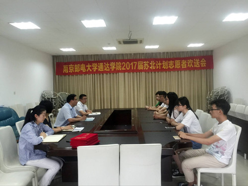 6月19日下午,威尼斯官网“2017届苏北计划志愿者欢送会”在大学生活动中心一楼会议室顺利举行,党委副书记王立辉、团委书记解厚荣、团委副书记姚远以及今年参加苏北计划的8名志愿者参加了欢送会。欢送会由团委书记解厚荣主持。