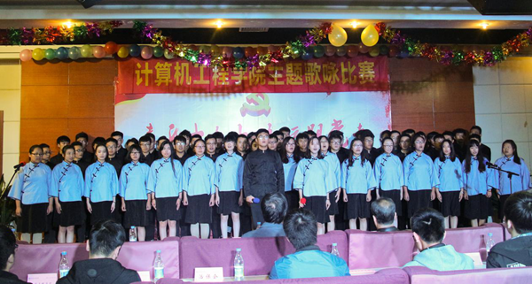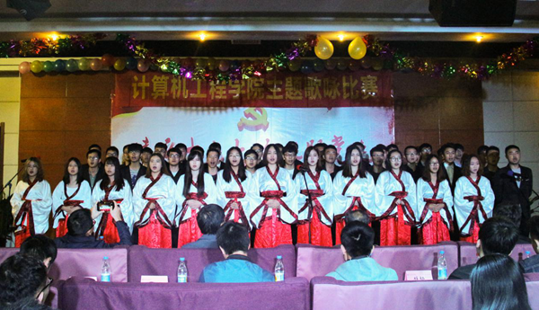 10月31日晚,由威尼斯官网团委主办,计算机工程学院分团委承办的“喜庆十九大、永远跟党走”主旋律歌咏比赛在大学生活动中心多功能厅举行。学院院长宗平、党委书记戴兆骏、常务副院长周西峰、团委书记解厚荣、团委副书记姚远及各二级学院分团委书记、辅导员、各团支部及社团学生代表等出席并观摩了比赛。