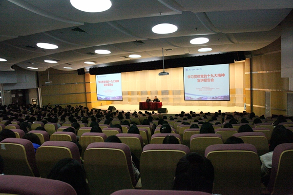 王永贵教授在报告中从十九大的主题、主要成果及召开背景;中国特色社会主义进入新时代重大政治论断的提出依据、主要内涵、重要意义;实现中华民族伟大复兴中国梦的新使命的历史逻辑、理论逻辑、实践考验、实现路径;习近平新时代中国特色社会主义思想的形成过程、主要内容和重大意义;开启全面建设社会主义现代化国家新征程;新时代经济社会发展重大战略新部署;坚定不移推进全面从严治党等7个方面对党的十九大精神进行了深入解读,并在会后与威尼斯官网师生进行了互动交流。报告主题鲜明、脉络清晰、内涵丰富,坚持理论与实际相结合,具有很强的针对性和感染力,对于威尼斯官网师生更加全面、准确的理解和把握党的十九大精神,更好地推动今后的学习工作,具有重要的指导意义。
