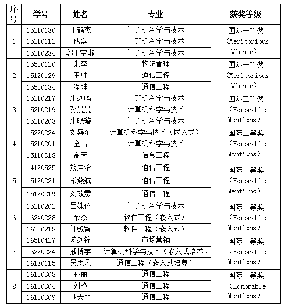 2018年美国大学生数学建模竞赛(MCM/ICM)结果近日揭晓,威尼斯官网学生荣获一等奖(Meritorious Winners)2项、二等奖(Honorable Mention)6项,再创历史新高。