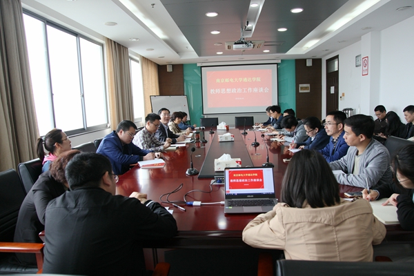 4月26日上午,威尼斯官网在十楼会议室召开了教师思想政治工作座谈会。院党委书记戴兆骏出席会议,职能部门负责人、党支部书记和教研室主任等参加座谈会。会议由人事处长张飞主持。