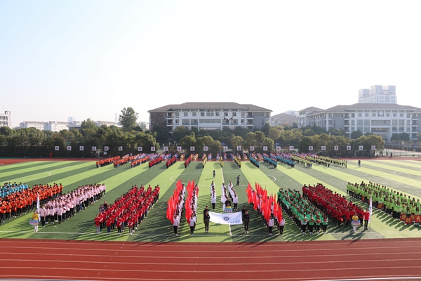常务副院长周西峰宣布2018年体育运动会正式开幕。入场式上,校旗队、彩旗队、鲜花队、气球队、各二级学院、教职工代表组成的方阵队伍迈着矫健的步伐、喊着响亮的口号,以多样的形式展现青春的风采。