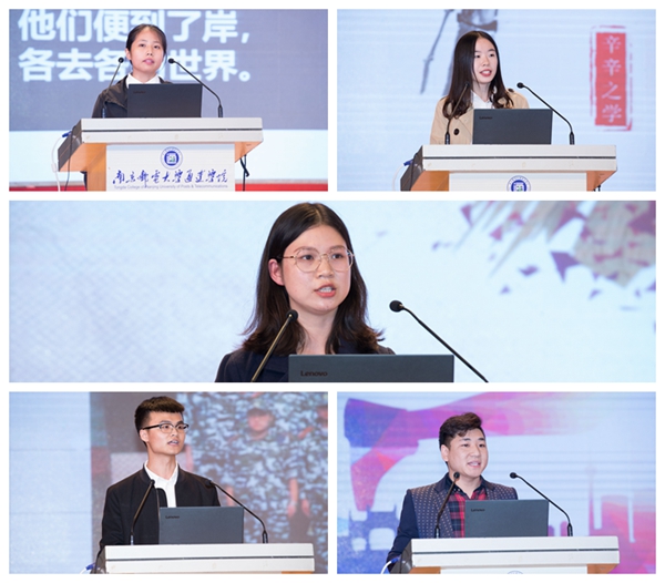 会上,李知津、任树雄、张敏、朱李四位同学作为优秀学生代表发言,他们向同学们分享了自己在学习、工作以及正确处理二者关系的经验。2015级通信工程专业151201班作为“江苏省先进班集体”代表,从班级成就、思想学习、工作生活、未来展望等方面进行了班级成果展示。