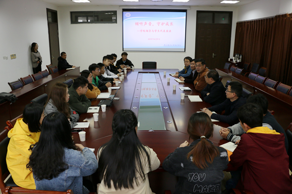 4月9日下午,学院院长王承宽、党委书记汪业周在大学生活动中心二楼会议室与学生代表座谈,听取学生对学院建设发展的意见和建议。党委副书记、副院长王立辉,学生工作处负责人、各年级学生代表参加了本次座谈会。