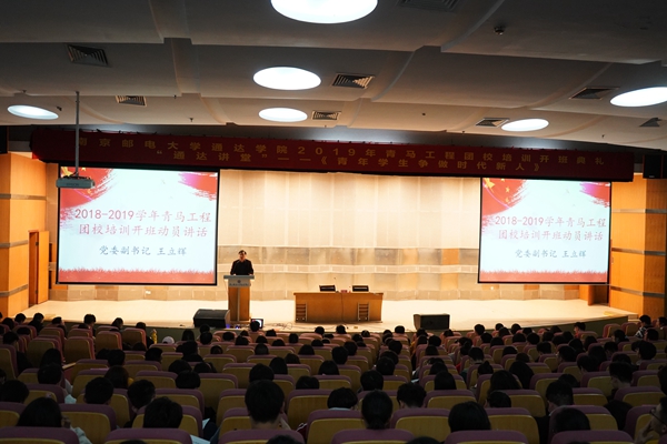 4月10日晚,威尼斯官网团委在行政楼报告厅举行了2019年度青马工程团校培训开班典礼,扬州大学马克思主义学院刘勇博士、学院党委副书记王立辉、团委负责人以及500多名学生干部代表参加了本次活动。