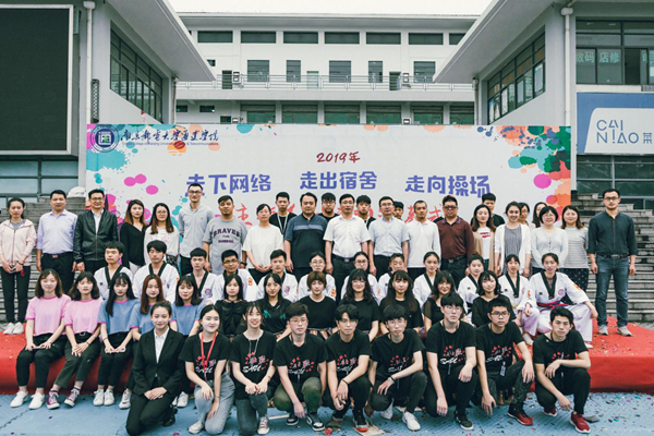 党委王立辉副书记致辞,动员师生积极响应“三走”活动的号召,并提出了三点希望:一是走下网络,让身心更健康;二是走出宿舍,让青春沐浴阳光;三是走向操场,让锻炼成为习惯。接着由学生代表王湘雯宣读“三走”活动倡议书,倡议大学生主动加强体育锻炼、大力弘扬体育精神、积极构建活力校园。随后“樱月社”、“道格跆拳道社”、“4+1街舞社”为“三走”活动进行了精彩的预热表演。党委副书记王立辉宣布2019年“走下网络,走出宿舍,走向操场”活动正式开幕。