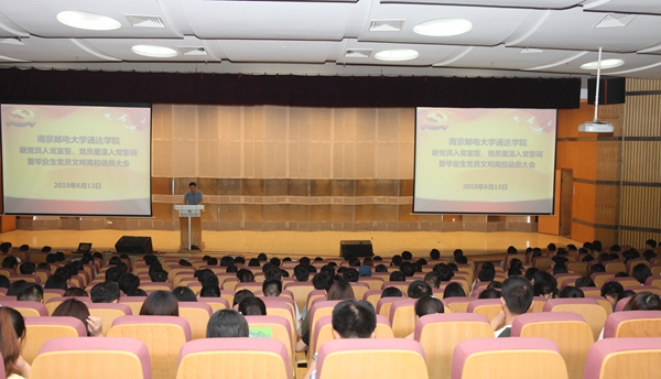 6月13日下午,院党委在行政楼报告厅举行了新党员入党宣誓、党员重温入党誓词暨毕业生党员文明离校动员大会。院党委委员,各学生党支部书记,学工处、团委等部门负责人,全体学生党员和近期加入党组织的新党员出席大会。会议由院党委委员、党办主任甘宗盛主持。
