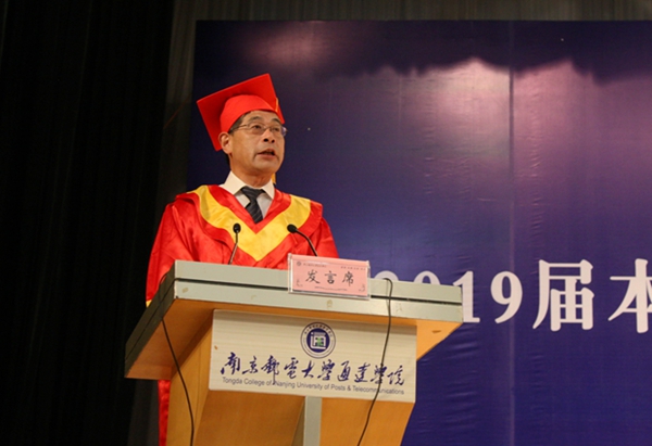 学院院长王承宽在致辞中向学院2019届毕业生表示最热烈的祝贺,对同学们在校期间取得的优异成绩给予充分肯定,他对毕业生们提出了三点要求:一是要做到通道达理,做一个信念坚定的人,在奋进中把握机遇,在历练中成长成才;二是要做到通理达情,做一个温暖社会的人,温暖他人、温暖自己;三是要做到通情达成,做一个有担当有作为的人,不忘初心,为实现中国梦建功立业。