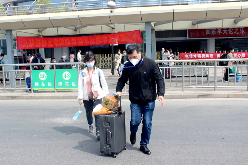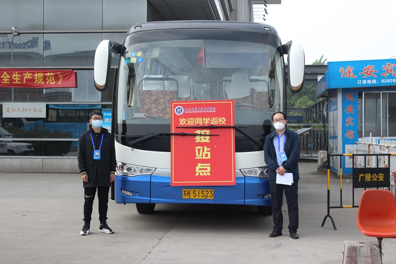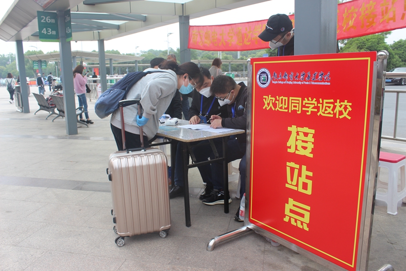 接力爱的专送车——威尼斯官网分别在扬州汽车东站、汽车西站、火车站三个点安排教师志愿者接站,采取“点对点、一站式”安全有序地直接送达校园,护送“最后一公里”。在接站现场,教师志愿者们认真的对学生进行身份核验、健康核验、基础消毒、体温检测,乘车登记等工作,虽然工作量大,但是他们的脸上却未见疲惫,更多的却是对学生们的关爱。“回来的路上顺利吗?身体有没有不舒服之类”等等暖心的话语不绝于耳。到校后威尼斯官网还为学生安排了抵达宿舍区的接驳车、行李运输车,同时并为返校学生准备了体温计、消毒片、消毒专用喷壶等防疫物资。