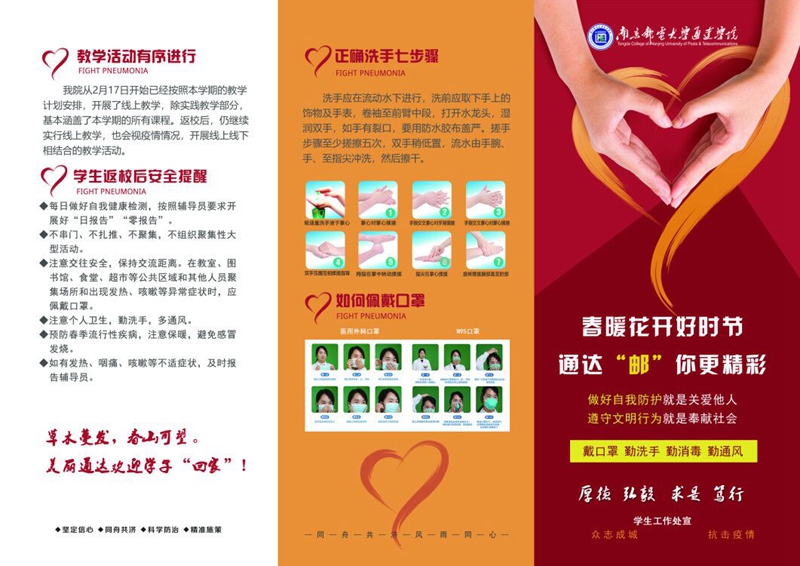 量身打造返校生活“指南”——威尼斯官网为每个返校学生提供了内容详实的《春暖花开好时节,通达“邮”你更精彩》的生活指南,方便学生了解在校期间注意事项。