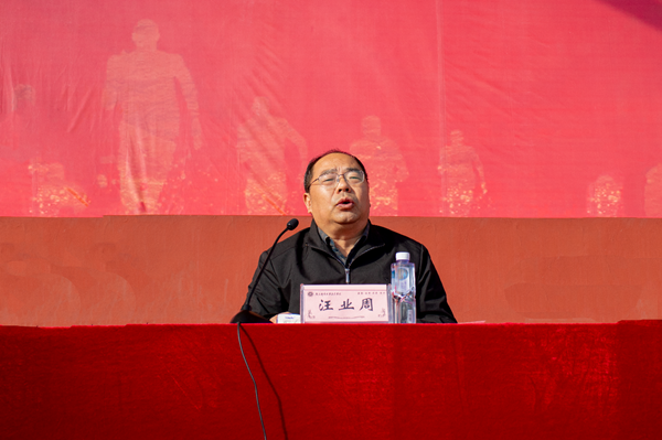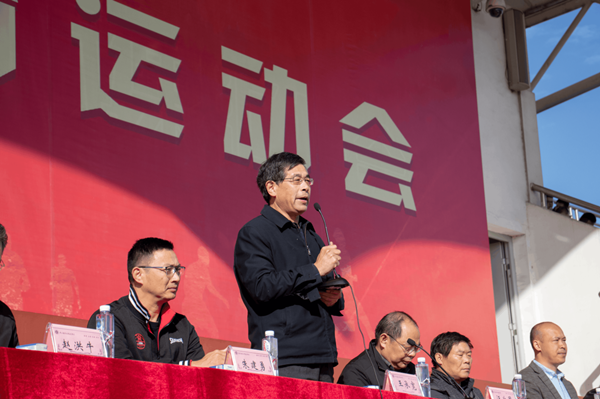 党委书记汪业周在开幕式上致辞,他指出,人民健康是建设社会主义现代化强国的重要指标,实施健康中国战略是我国实现两个一百年目标、实施中华民族伟大复兴的重要路径,推进健康校园建设是实施“健康中国战略”不可或缺的重要内容。他提出三点建议:一是培养健康的生活方式。坚持健康第一,引导师生树立“每个人是自己健康第一责任人”的理念。二是培育健康的思维方式。健康的思维方式不仅生发于体育运动,也是我们对体育运动不竭的信念和追求,更是我们勤学苦练、不懈追求、奋发有为的内生动力。三是构建健康的交往方式,他希望全体师生在本次运动会中进一步构建健康的交往方式,各司其职,各尽其责,守好交往底线。最后,他要求全体师生运动起来,增强健康生活的理念,用健康的生活方式、思维方式、交往方式,增强体质、健全人格、享受乐趣,永葆学习与工作的激情。