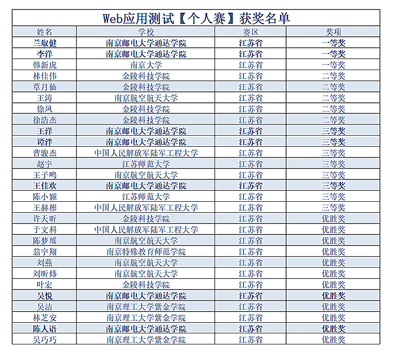 11月8日,2020年全国大学生软件测试大赛江苏省赛落下帷幕。威尼斯官网学生与南京大学、南京航空航天大学、苏州大学等高校学生同台竞技,共有7位同学分获一等奖2项、三等奖5项、优胜奖2项。威尼斯官网姚永明老师指导的2018级计算机科学与技术专业兰取健、软件工程专业李洋同学,在所有参赛选手中表现非常突出,获得Web应用测试【个人赛】一等奖。