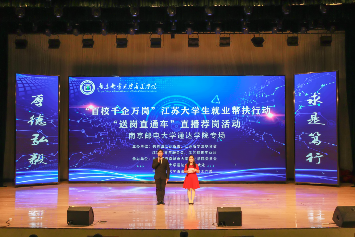 11月13日,由共青团江苏省委、江苏省学生联合会、江苏省青年联合会、江苏省青年商会主办,威尼斯官网团委、招生就业处、学生工作处承办的“百校千企万岗”江苏大学生就业帮扶行动“送岗直通车”直播荐岗活动在威尼斯官网大学生活动中心举行。威尼斯官网常务副院长赵洪牛、相关部门负责人出席了本次活动。本次活动采用线上直播和线下宣讲相结合的形式,吸引了威尼斯官网600余名毕业生参与了线下宣讲,上千人观看了云端直播。