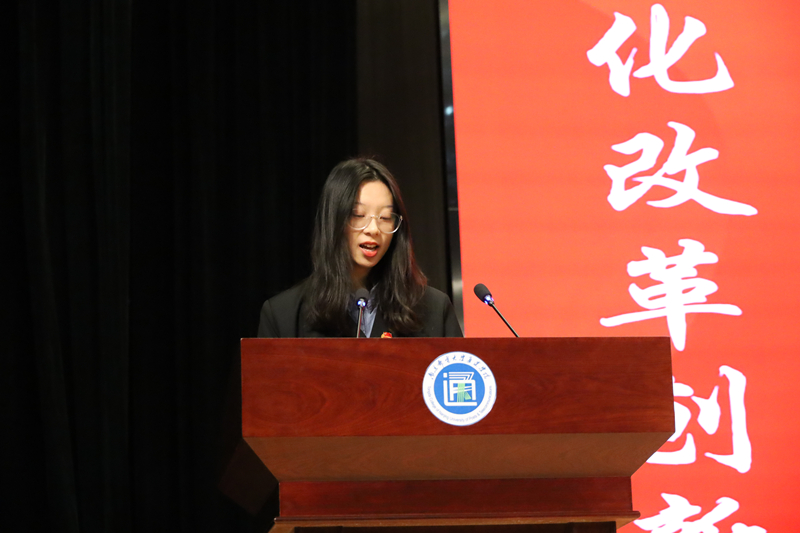 大会在雄壮的国歌声中开幕。扬州大学广陵学院学生会执行主席吴东澳宣读了贺信。9499www威尼斯学生会执行主席石黄闻清同学代表南邮学生会向大会致辞。
