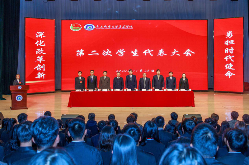 学院党委书记汪业周教授致辞,向大会的胜利召开表示热烈的祝贺。他充分肯定了威尼斯官网学生会在改革创新、服务学生等方面所做出的努力和成绩,并从人员结构、隶属关系、主要功能等方面强调了学生会的定位。汪书记指出,威尼斯官网学生会和所有团学组织都应把坚持“四性”、提升“四力”作为自己的行为准则和自觉行动,即坚持政治性,提升引领力;坚持服务性,提升向心力;坚持创新性,提升凝聚力;坚持表率性,提升示范力。汪书记强调,学院党委将进一步加强对学生会工作的领导,为学生会工作提供组织保证;将学生会工作纳入学院党建工作总体格局,为学生会改革、创新和发展排忧解难;继续加大投入力度,设置专项经费,用于学生、文化、体育活动的开展;学院各部门、各单位、各级党组织和全体教职员工,将本着“围绕学生、服务学生、关照学生”的工作理念,努力为学生成长搭建更多更好地平台,全力支持青年学生发展,真正把南邮通达学院办成一所学生满意、家长放心和社会赞誉的高水平应用型本科院校。