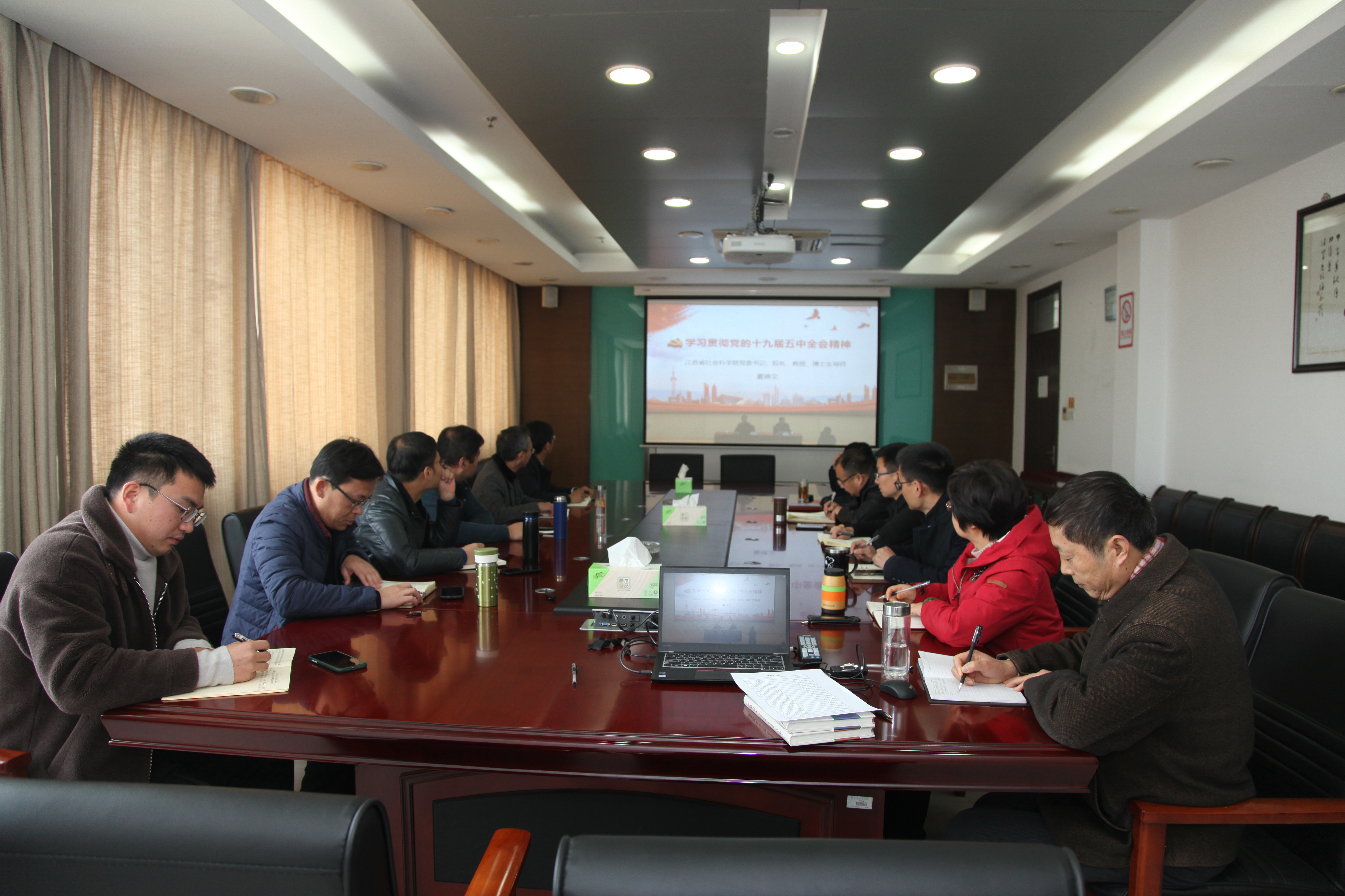 12月4日下午,9499www威尼斯举行十九届五中全会精神报告会,邀请江苏省社会科学院党委书记、院长、省委宣讲团成员、教授、博士生导师夏锦文作传达中国共产党第十九届中央委员会第五次全体会议精神报告,并通过学校自建平台进行直播。院党委组织理论学习中心组成员在学院行政楼1013会议室同步收看报告实况。