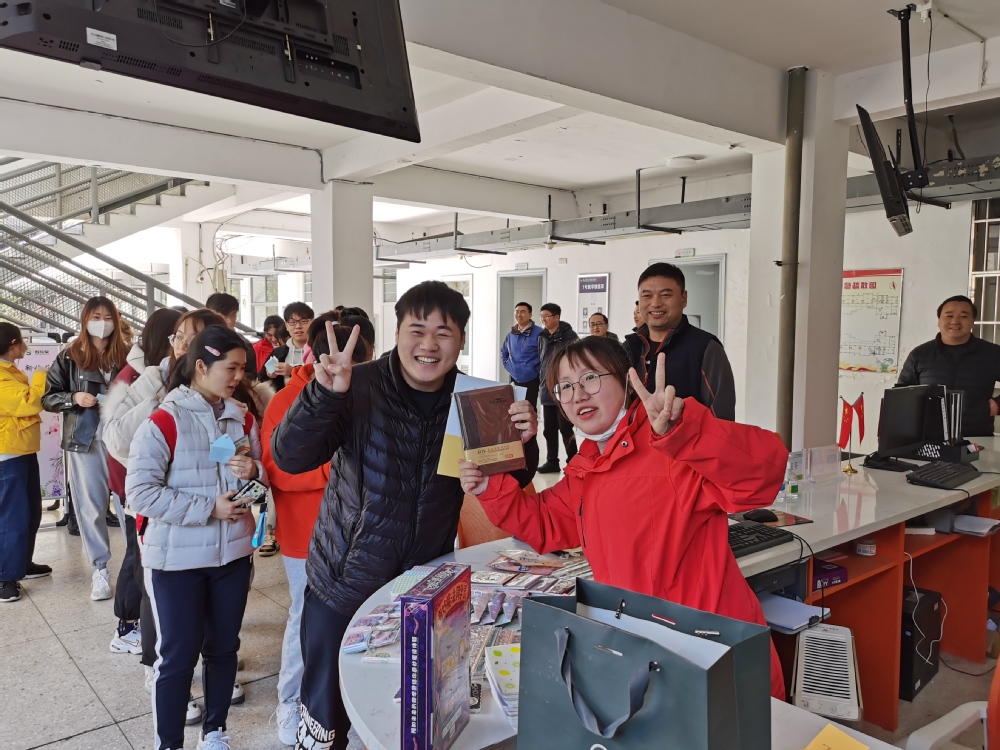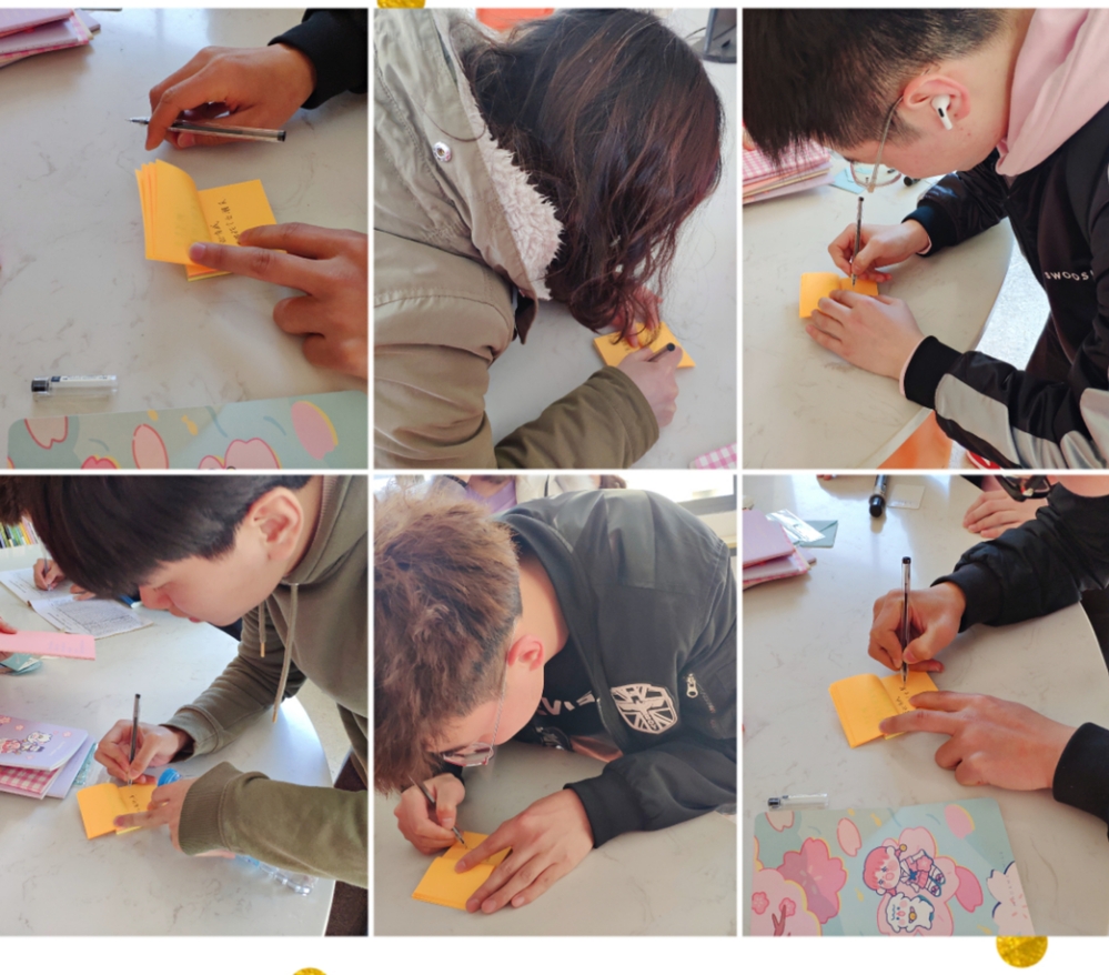 活动于3月22日下午1时30分正式启动,服务驿站的工作人员事先已精心布置好活动现场。参与活动的同学也是热情踊跃,他们惊喜地发现收到的不仅仅是写满励志劝学话语的卡片,还能同时抽取贴心精致的小礼品,如笔记本、签字笔、便签纸、套尺、按摩捶、蚊不叮等。同学们纷纷把对新学期的憧憬寄语贴在了分享墙上,互相鼓励。