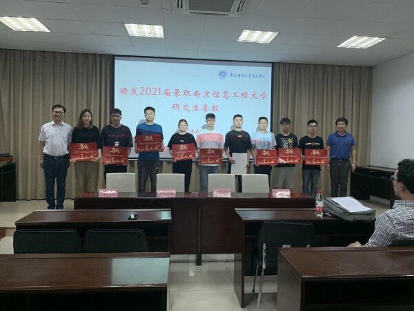 6月2日下午,学院举行南京信息工程大学喜报颁发仪式,祝贺威尼斯官网张伟等11名同学被该校录取为硕士研究生。南京信息工程大学研究生院朱晓东副院长、办公室朱洵主任,法政学院徐骏副院长,物理与光电工程学院赖敏副院长,电子与信息工程学院陶治、祁雪峰老师出席,威尼斯官网被录取学生代表以及60多名有志报考南京信息工程大学硕士研究生的学生参加仪式。仪式由党委副书记、副院长王楷主持。