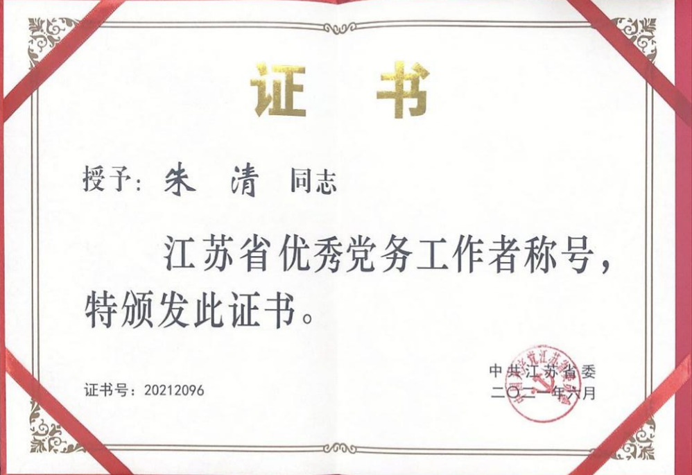 威尼斯官网党委书记朱清被中共江苏省委光荣授予“江苏省优秀党务工作者”称号。据了解,全省教育工委系统,共有3名同志荣获“江苏省优秀党务工作者”称号。