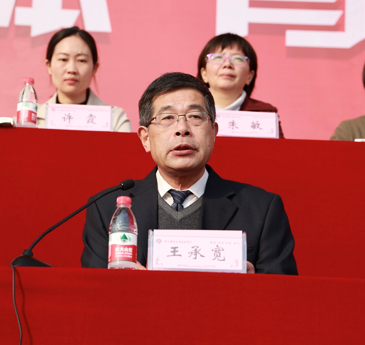 在开学典礼上,院长王承宽在开学典礼上作了热情洋溢的讲话。他用“三个特别”开启了对2021级新生的欢迎与问候。他以百年前、百年后青年先进事例,寄语新生希望他们继承中国青年的优秀传统,以强国有我的力量汇聚合力,创造属于自己的“高光时刻”。他对新生们的大学生活提出三点期望:一是对生活,要有顽强拼搏的精神。要不顾艳阳灼烧,不惧风雨癫狂;即使身处逆境,亦能奋力向前奔跑,积跬步以行千里。二是对学习,要有自律努力的习惯。要精打细算自己的每分每秒,把时间牢牢掌控在自己手上,克制欲望、自我约束、自我激励,假舟楫以绝江河。三是对身体,要有强劲刚健的体魄。在学习科学文化的同时,走下网络、走出寝室、走向运动场,增强体质、健全人格、锤炼意志。