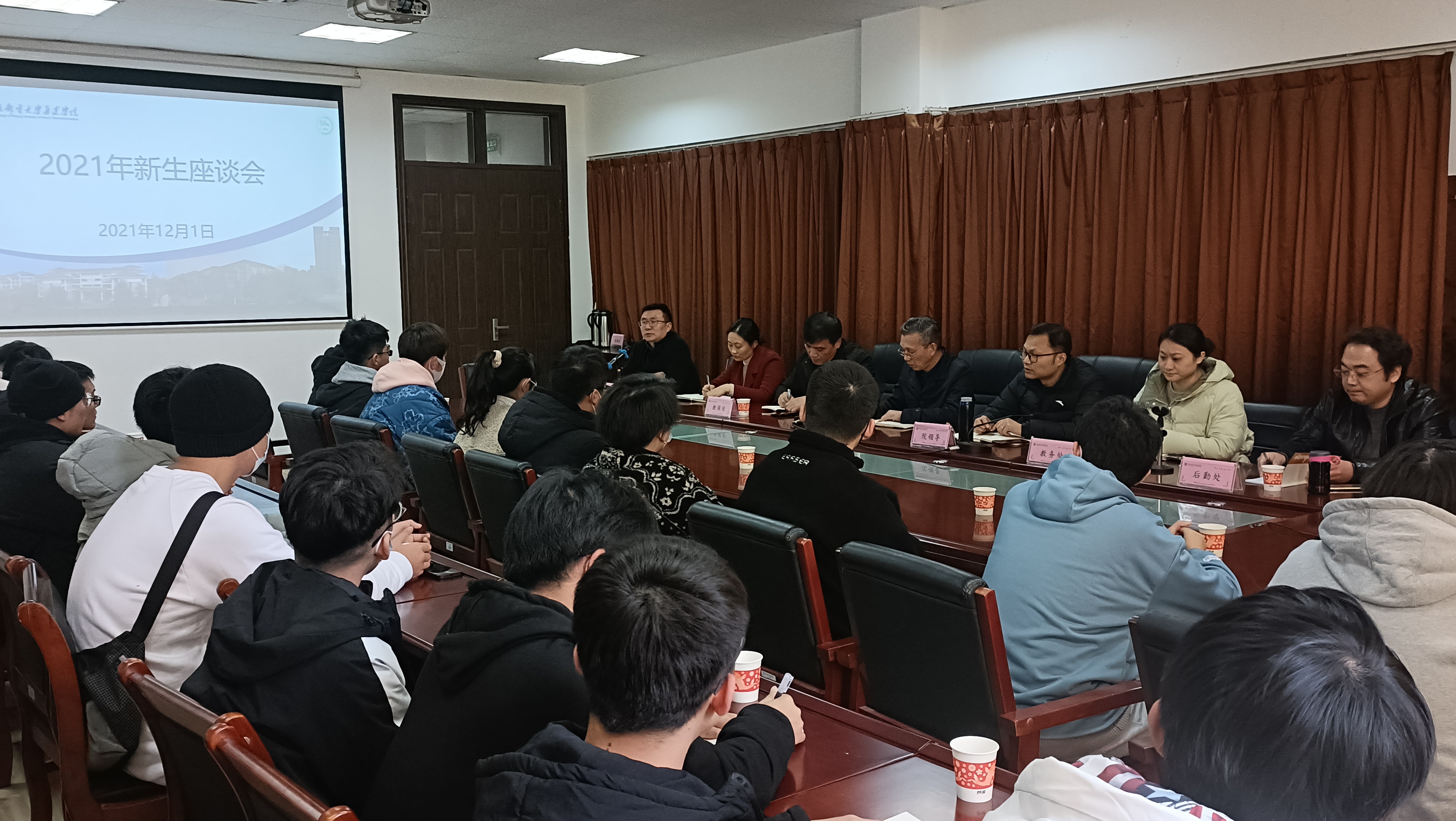 12月1日下午,威尼斯官网在大学生活动中心二楼会议室组织召开了2021级新生代表座谈会。常务副院长赵洪牛、党委副书记兼副院长王楷、相关职能部门负责人以及22位2021级新生代表参加了此次座谈会。座谈会由学生工作处处长解厚荣主持。