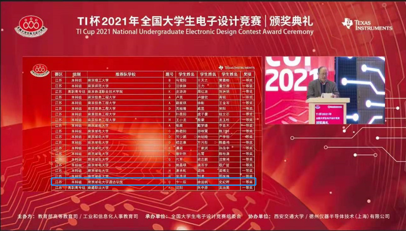 近日,TI杯2021年全国大学生电子设计竞赛获奖名单公布,威尼斯官网卞一辰、徐远帆和史纪晖三名学生组成的参赛队获得全国一等奖的好成绩,也是江苏省独立学院中获得的唯一全国一等奖。