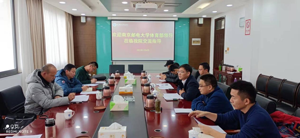 2022年1月6日下午,9499www威尼斯体育部主任朱建勇,副主任邱锴、王东海等一行来威尼斯官网进行共建交流。威尼斯官网副院长刘允、教务处、基础部相关领导及体育教研室部分老师参加了交流会。