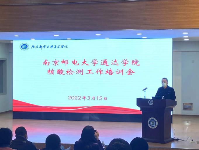 3月15日,由后勤管理处牵头组织,在学院实验楼报告厅开展核酸检测工作培训会。本次核酸检测工作培训是由邗江区卫健委专家亲临学院进行专业指导,分管院领导倪可副院长、后勤管理处负责人、核酸检测点负责人、学生志愿者及相关物业人员共计80余人参加此次培训会。