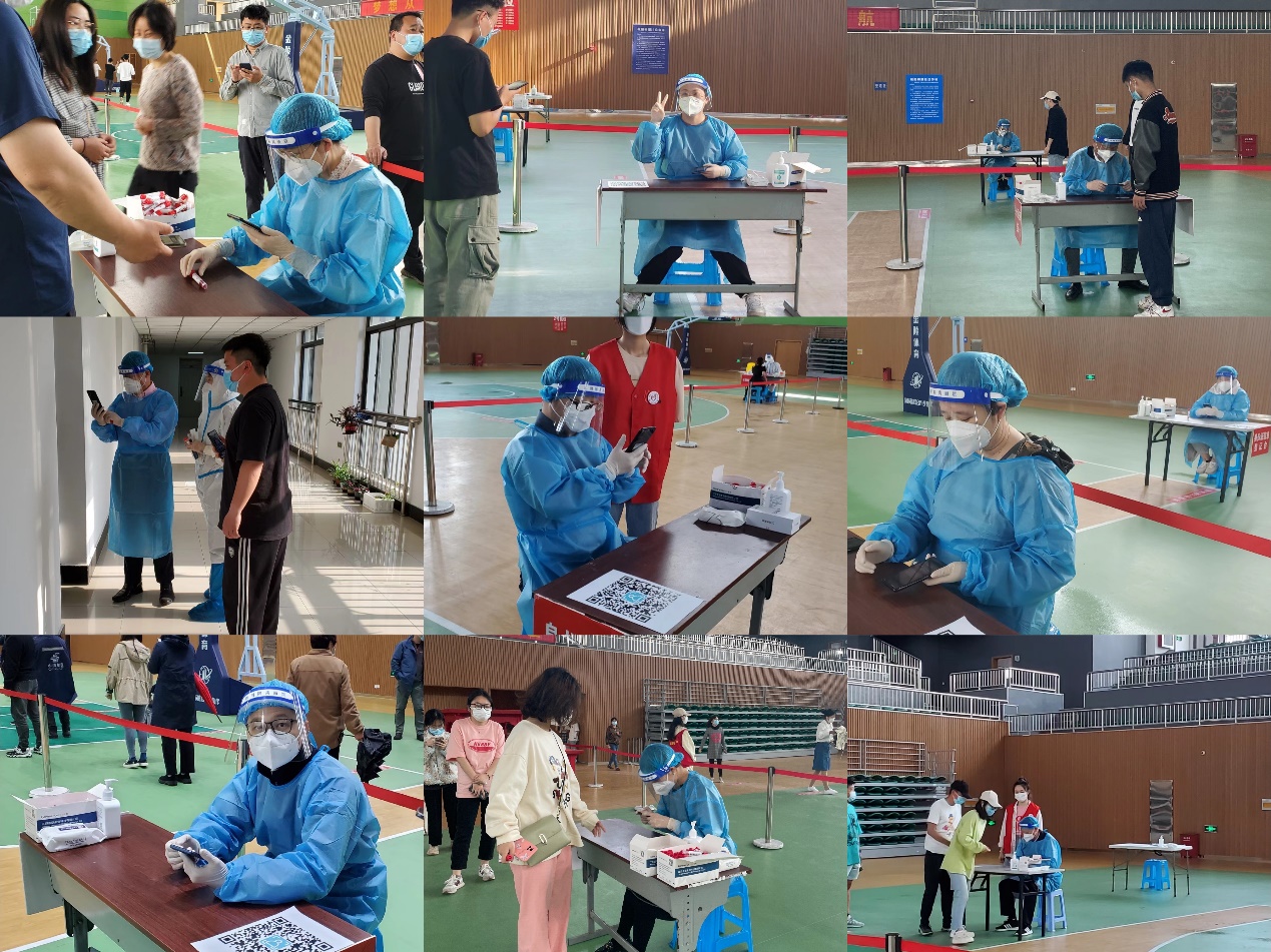 教师公寓检测点的志愿者,每日下午按时按点来到检测现场,点名签到,维持现场核酸秩序,及时联系未下楼核酸人员,保证不漏检一人。核酸采样和信息录入人员风雨无阻,认真仔细做好志愿服务工作。