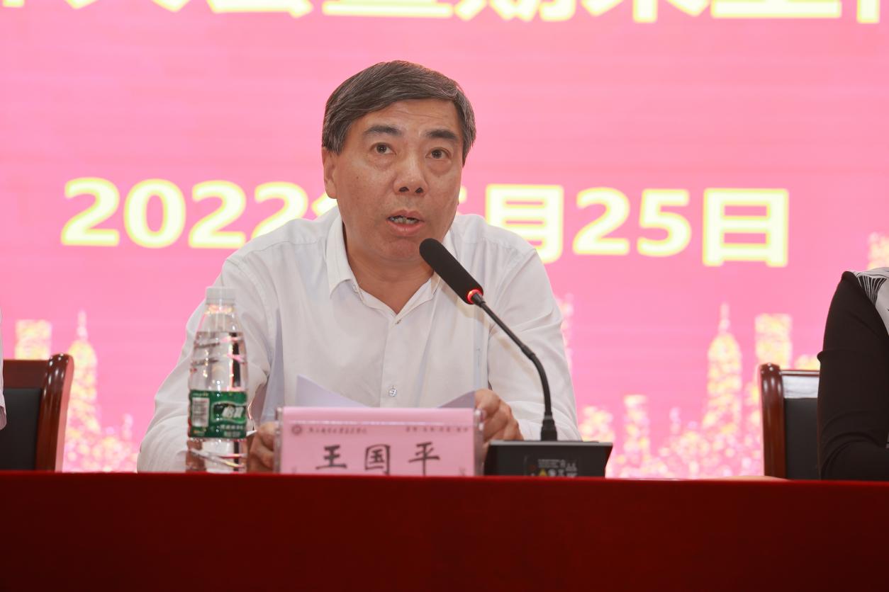 王国平院长在讲话时指出,自本轮疫情发生以来,全院师生员工、广大后勤外包服务单位一线员工众志成城、履职尽责,为守护师生健康、维护校园安全稳定提供了坚强保证,为推动学院的各项事业有序开展做出了重要贡献。他简要回顾了本学期以来学院在疫情防控、机构设置调整、庆祝9499www威尼斯80周年校庆、校园文化建设、教育教学管理、考研升学、二级学院网站建设、人事制度改革、军训安排等方面工作开展情况。