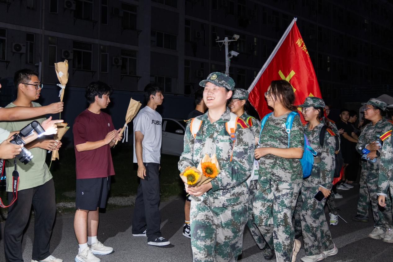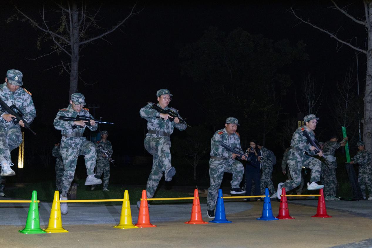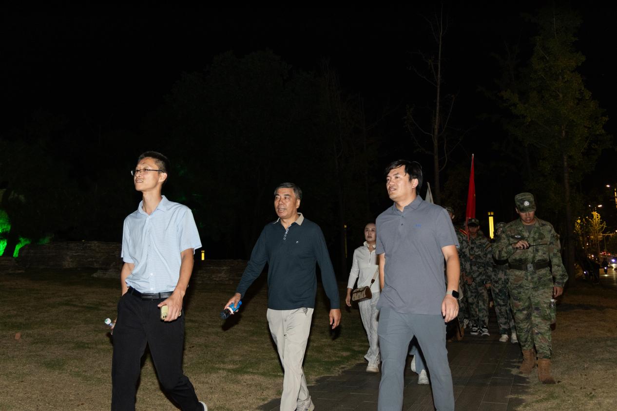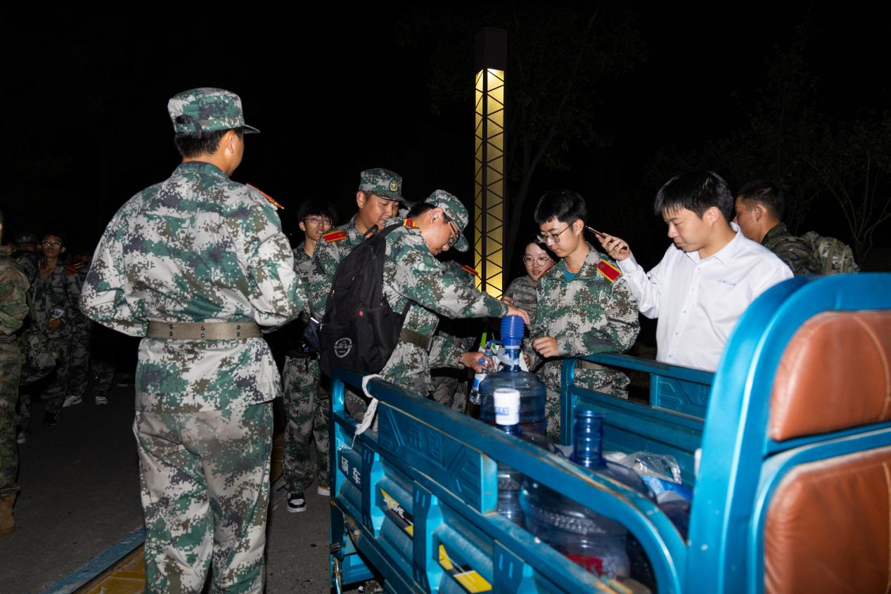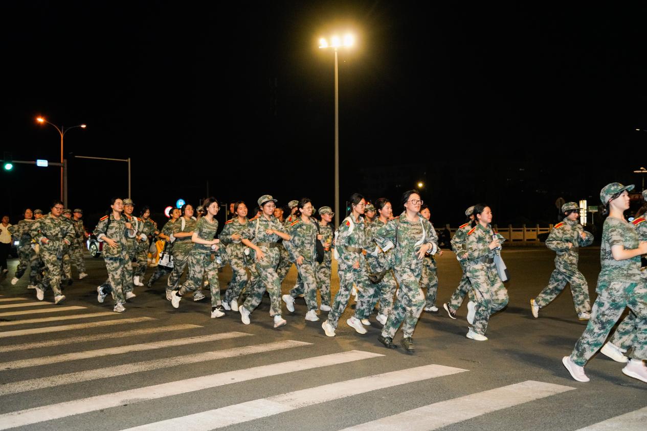 为了确保此次夜间军训拉练的顺利进行,学生工作部(处)、人武部、后勤处、保卫处等多部门紧密协作,共同织就了一张坚实的安全保障网。人武部负责线路的详细勘察与计划的精心制定,他们多次组织模拟拉练,确保每一个细节都万无一失;后勤处则提供了充足的物资补给与医疗支持,提供坚实的后勤保障;保卫处在行军途中的各个路口设置卡点,进行交通引导,筑牢安全防线;各二级学院安排专门人员跟队随行,时刻关注拉练学生的身体状况,并在拉练终点组织人员迎接凯旋的“战士”们,赋予本次活动满满的“仪式感”。