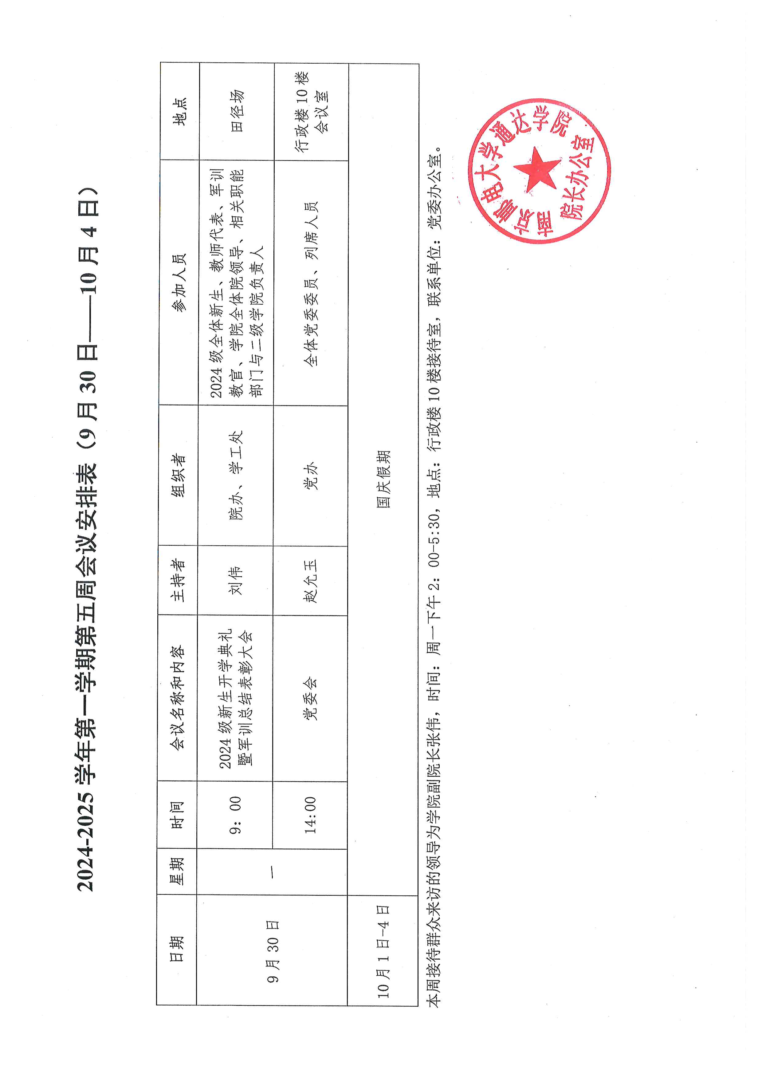 2024-2025学年第一学期第五周会议安排表