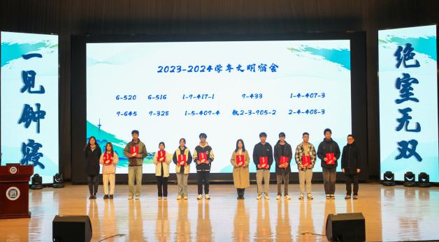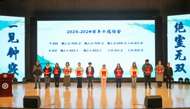 最终6-5182-5-510-32-2-404-42-5-110-22-5-209-12-2-204-42-3-405-210-6172-5-410-12-5-310-1宿舍获得“十佳宿舍”荣誉称号,电气工程学院6-518宿舍凭借较强的综合表现荣获“十佳宿舍”第一名。活动现场教师代表为2024年“十佳宿舍”、2023-2024学年“示范宿舍”、“文明宿舍”颁奖。