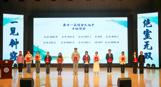 本届宿舍文化节设计了宿舍内务评比、宿舍文化建设、宿舍安全知识竞赛、宿舍特色视频制作以及宿舍风采展示五个环节。经过前期四个环节的比拼,产生了“十佳宿舍”候选宿舍名单。在风采展示大会上,“十佳宿舍”候选宿舍代表依次上台,围绕宿舍成员、宿舍环境、宿舍文化建设等方面对所在宿舍进行了介绍,展示了和谐温馨、积极向上的宿舍文化氛围。