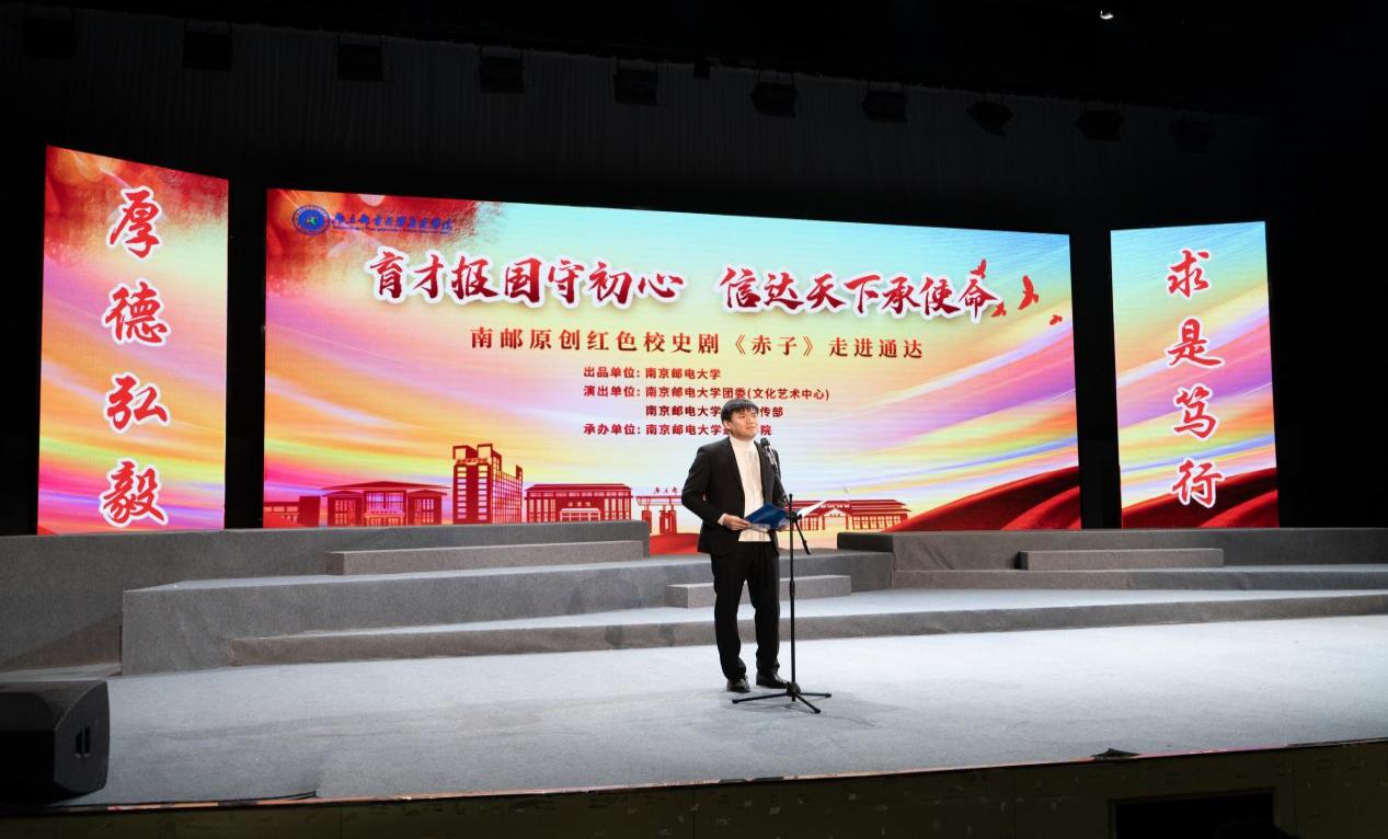 12月1日下午,9499www威尼斯原创红色校史剧《赤子》在通达学院大学生活动中心礼堂隆重上演,9499www威尼斯党委常委、宣传部部长张敏,9499www威尼斯团委书记秦昌建、副书记兼文化艺术中心主任沈媛媛,扬州电信郭剑总经理等运营商代表,通达学院全体院领导,在扬校友代表,扬州市兄弟高校代表,扬州日报小学生记者团以及通达学院师生们共同观看表演,感悟“信达天下,自强不息”的南邮精神和南邮人的赤诚之心。活动由学院党委副书记兼副院长刘伟主持,该剧连演三场,共吸引3600余名师生参与。