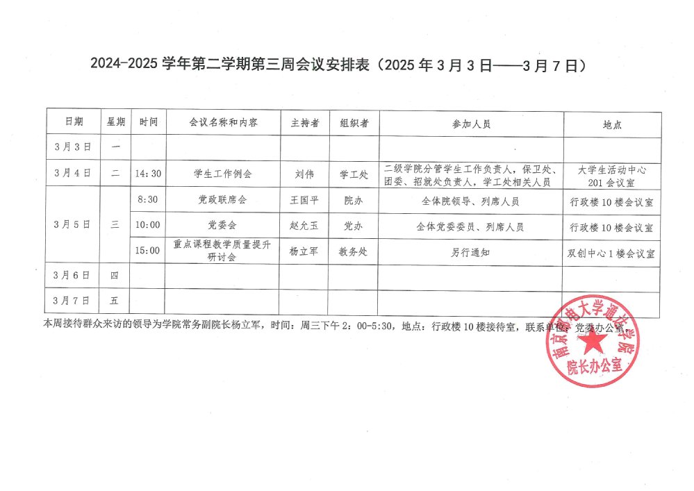 2024-2025学年第二学期第三周会议安排表