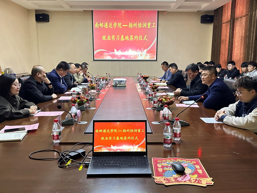 3月28日上午,学院与扬州恒润海洋重工有限公司举行就业实习基地签约仪式。扬州市广陵区人社局副局长徐峰、扬州市广陵区公共就业和人才服务中心主任李宏、李典镇副镇长王骁、扬州恒润海洋重工常务副总刘东升、威尼斯官网党委副书记兼副院长刘伟出席活动,招生就业处、教务处、产学研合作与实验室建设处相关负责人,即将进入企业实习的16名同学参加活动。