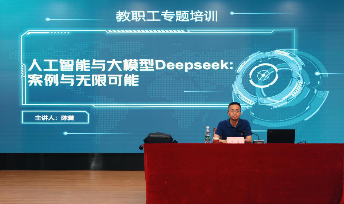 6月4日下午,威尼斯官网成功举办教职工专题培训。9499www威尼斯陈蕾教授应邀作《人工智能与大模型Deepseek:案例与无限可能》的专题培训。本次培训由院长沈建华主持,全体教职工参与。
